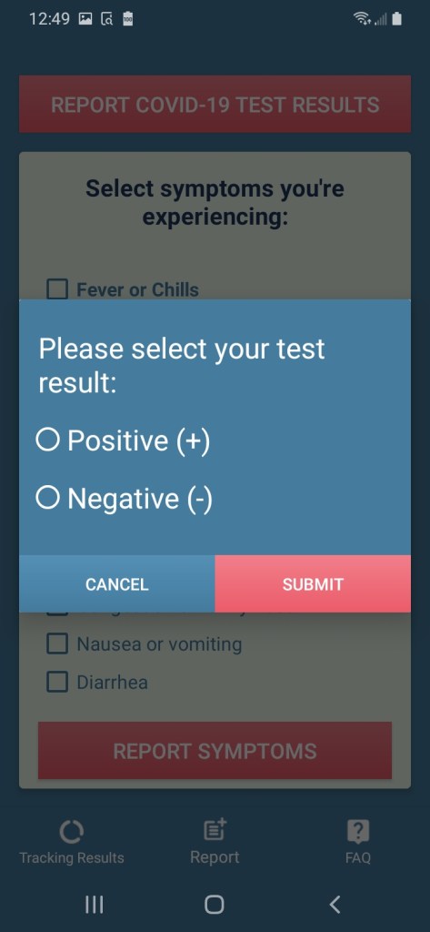 COVID-19 Contract tracing is an application for an Android phone which notifies a user if they have come in contact with someone who reported COVID-19 symptoms or a test result.